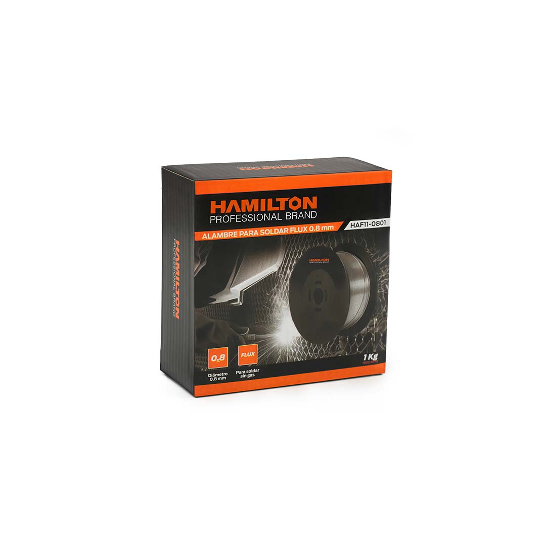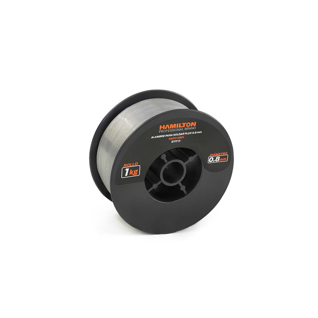 El alambre Flux sin gas E71T-11 Hamilton es un consumible para soldadura en acero al carbono orientado a soldadura estructural estándar. Su flux estándar está pensado para un comportamiento equilibrado y predecible en uniones habituales, trabajando sin necesidad de gas de protección externo.