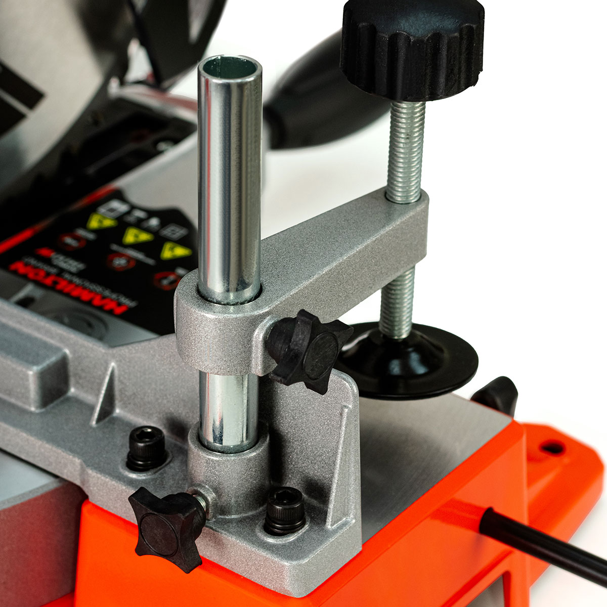 Su estructura incorpora extensiones de mesa en ambos lados, que amplían el área de apoyo para piezas largas y aumentan la estabilidad del corte. El dispositivo de sujeción mantiene el material firmemente sujeto, evitando movimientos o desplazamientos durante la operación. Con un diseño estable, clase de aislación II, cable de 2 metros y cuerpo equilibrado, la HNG002F es una herramienta sólida, confiable y de gran eficiencia para el trabajo diario.