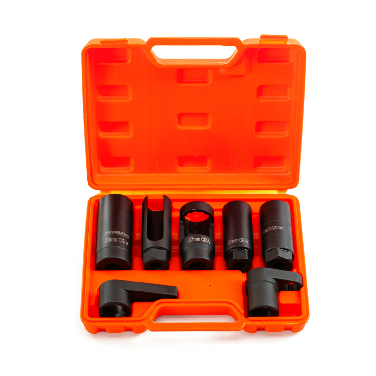 El Kit Extractor de Sonda Lambda AUT216 Hamilton es un set de bocallaves extractoras especiales diseñado para facilitarte la extracción e instalación de sondas lambda, sensores y determinados inyectores automotrices, incluso cuando el acceso es reducido. Su diseño con ranuras permite trabajar sobre sensores cableados con mayor precisión y con menor riesgo de dañar el componente o el alojamiento.