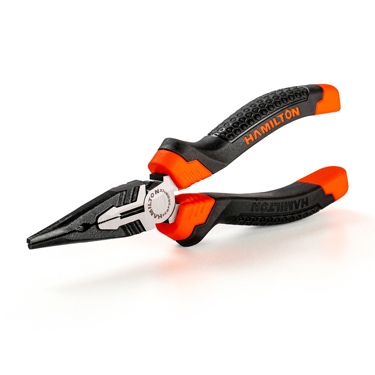 La Pinza de Punta Media Caña Recta de Hamilton, con cuerpo de acero Cromo Vanadio, ofrece precisión y resistencia en cada movimiento. Su acabado niquelado y tratamiento anticorrosión garantizan una herramienta duradera y siempre lista para el trabajo.