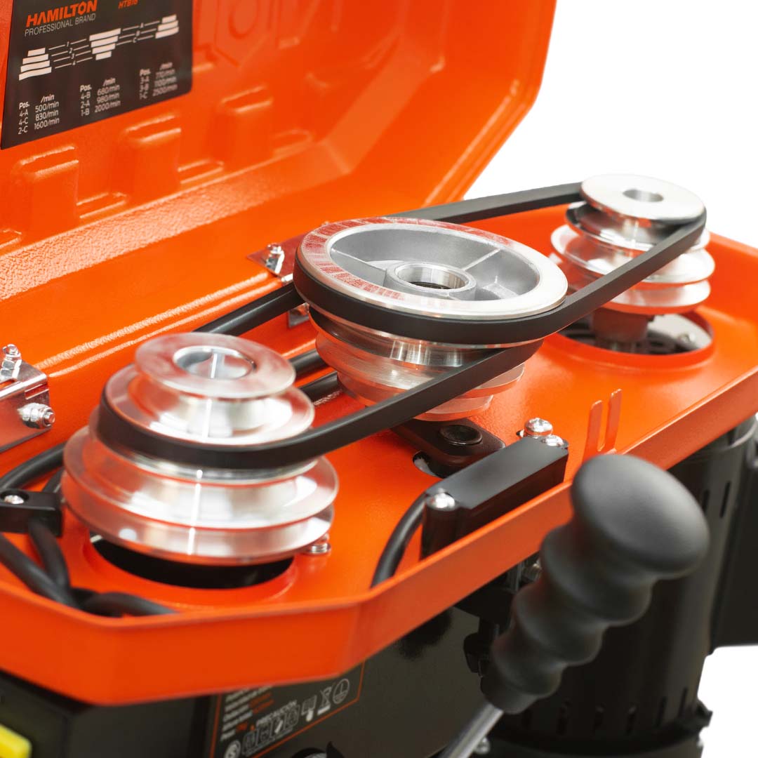 El Taladro de Banco Hamilton HTB16 es una herramienta fija de alta precisión, diseñada específicamente para el mecanizado y perforación de materiales en entornos de uso profesional. Equipado con un motor de 500W de alto torque y un sistema de 9 velocidades regulables (500 a 2500 rpm), permite adaptar la fuerza de corte a la exigencia de cada pieza, asegurando perforaciones perpendiculares exactas y prolongando la vida útil de las mechas.